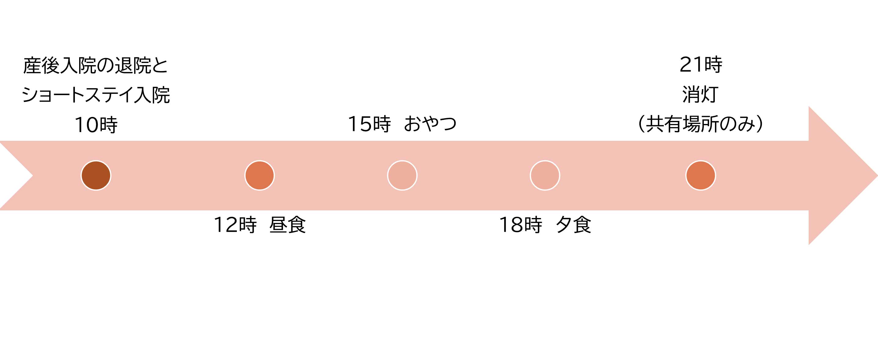 当院の産後ケア入院は、分娩入院の宿泊延長という形で実施しております。そのため、ママからも再度色々なお話をスタッフに伝える必要がなく、スムーズに産後ケアに移行できるメリットがあります!