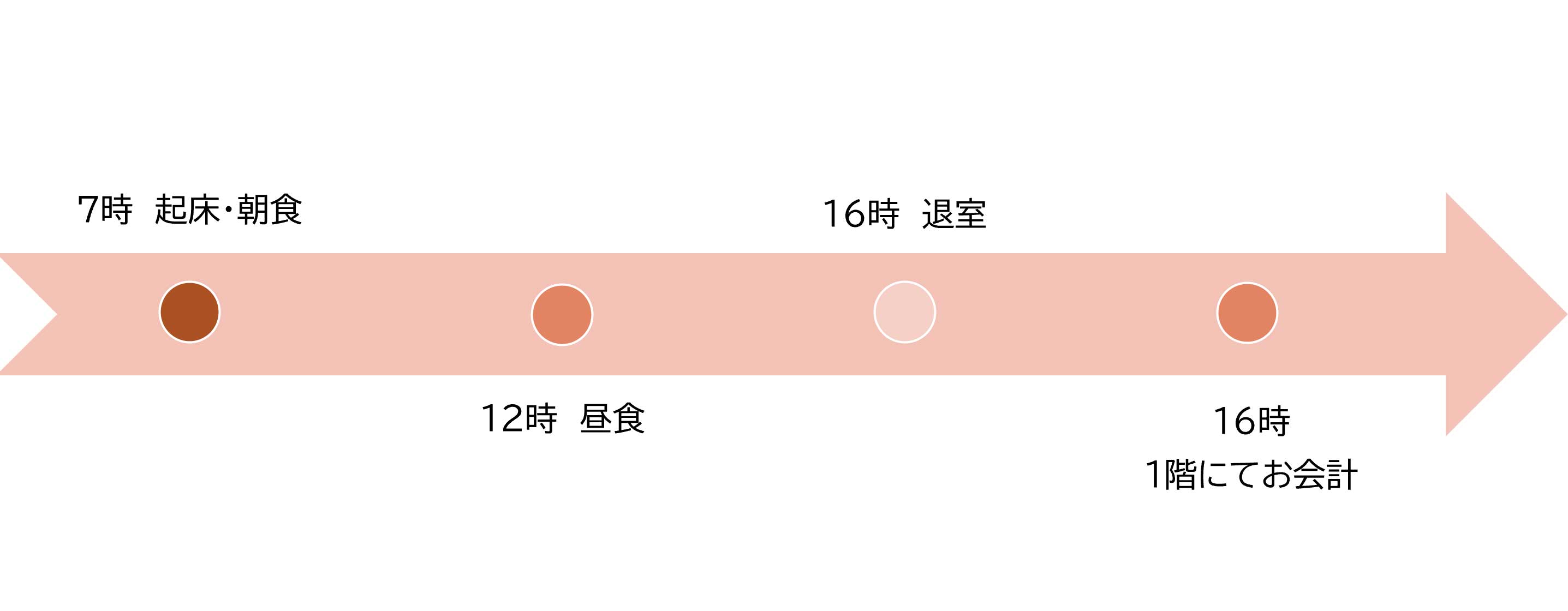 ①当院のベッド状況より基本は1泊2日/上限は2泊3日とし、退院時間は16時00分となります。